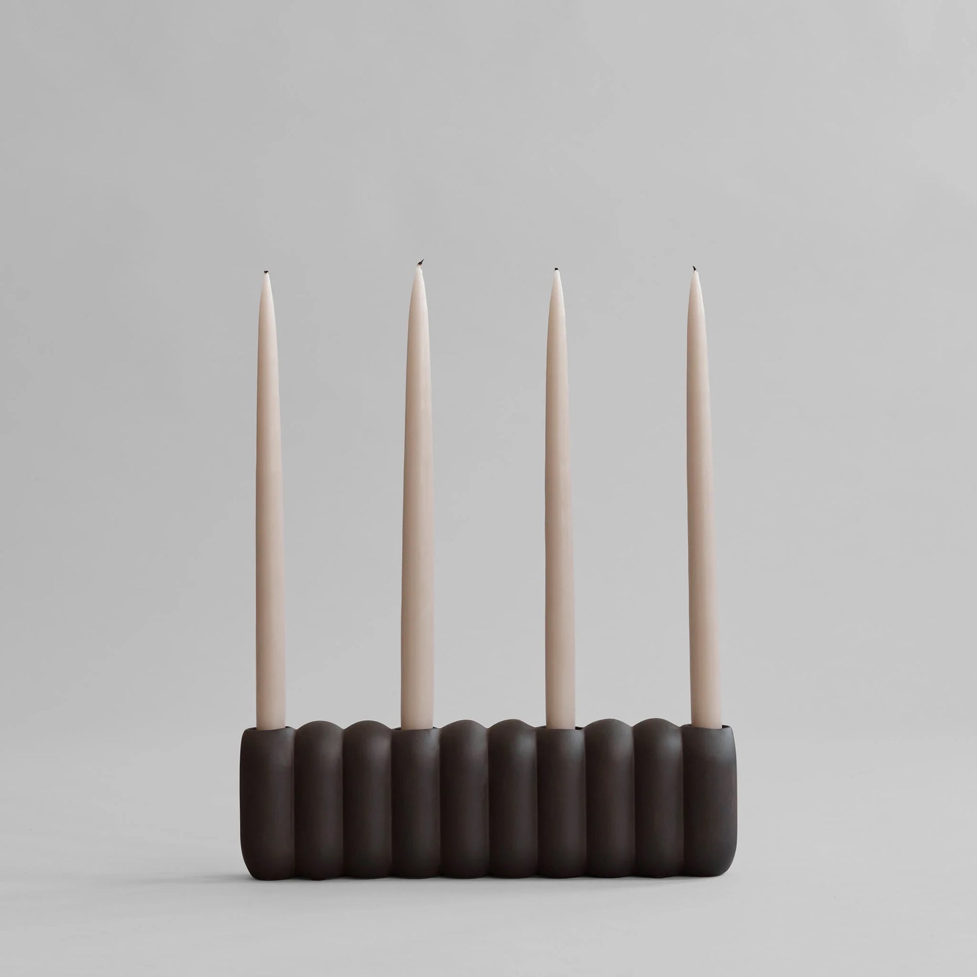 Αυτό το κεραμικό κηροπήγιο Tube σε καφέ χρώμα, είναι μέρος μιας σειράς από κεραμικές λαμέλες.