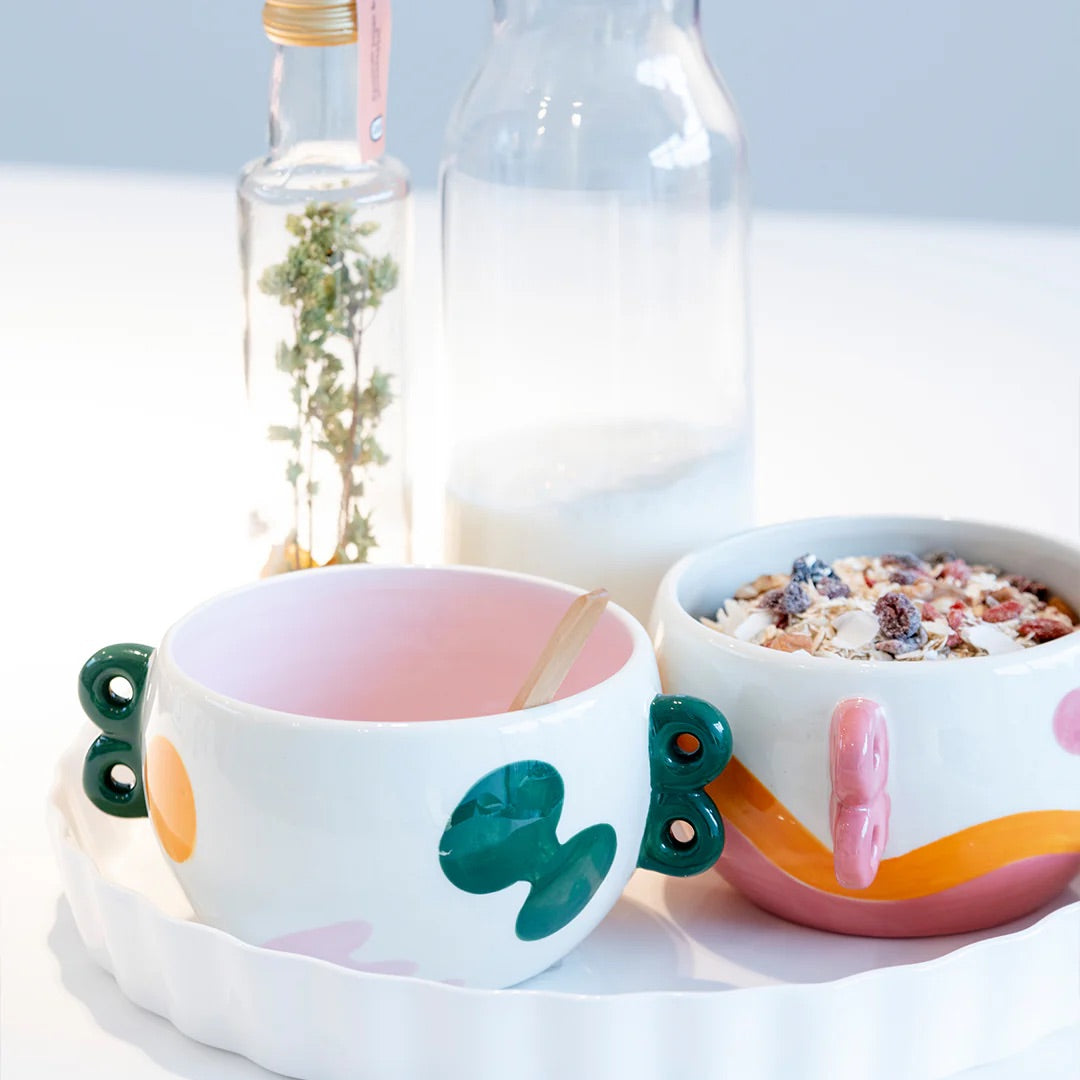 Σχεδιασμένο στο Βέλγιο και εμπνευσμένο από τον ζωντανό ισπανικό τρόπο ζωής, αυτό το μπολ φέρει το πολύχρωμο μοτίβο Sunset Sea. Με την οργανική του μορφή και τον ηλιόλουστο συνδυασμό χρωμάτων ροζ και κίτρινο, αυτό το χειροποίητο μπολ προσθέτει μια παιχνιδιάρικη νότα σε κάθε τραπέζι. Καθώς είναι χειροποίητα ζωγραφισμένο, κάθε κομμάτι είναι μοναδικό!